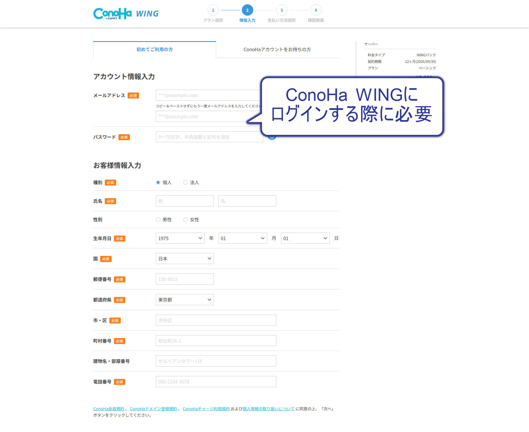 ここで入力するメールアドレスとパスワードはConoHa WINGのアカウント用だ。
